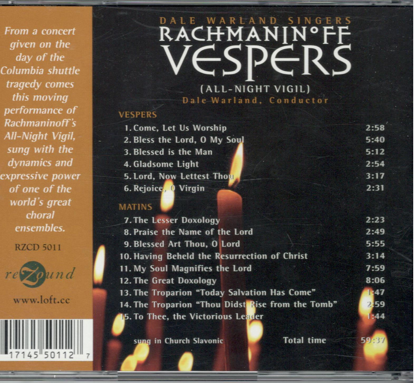 Vespers (all-night Vigil), for Alto, Tenor & Chorus, Op. 37- Vespers. Come, Let Us Worship
